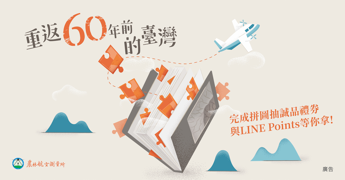 如果可以回到過去,你有沒有什麼特別想看的呢?現在林務局農林航空測量所就提供了一個這樣的機會,讓大家有機會看到60年前從天上看台灣是什麼樣子,在家就能免費參加還可以抽禮券,最高價值2000元。