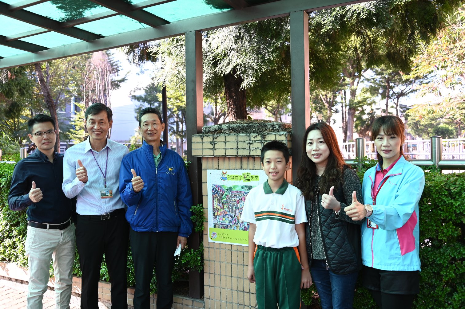 台中市大里區永隆國小的25周年校慶系列活動中,設計將學生的美術得獎作品,布置在學校周邊人行道,讓校園人行道變成展覽步道。