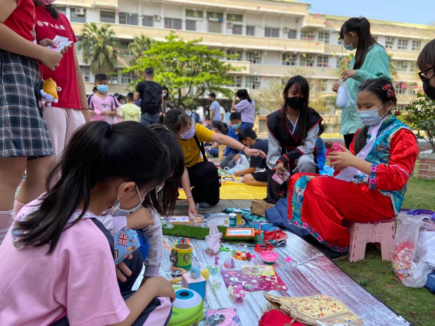 這次跳蚤市場一共有二十三個班級參加,攤位多達一百攤,因疫情關係沒有開放家長進校園參與,不少家長深覺可惜;還有班級拿著一籃籃的商品沿走道叫賣,有些盛裝打扮希望藉此吸引客人上門。