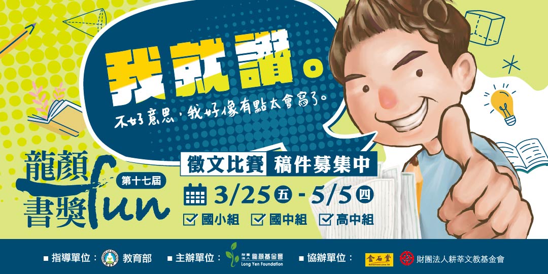 1、任選【第十七屆龍顏FUN書獎】書展任一參展書,寫讀後心得。