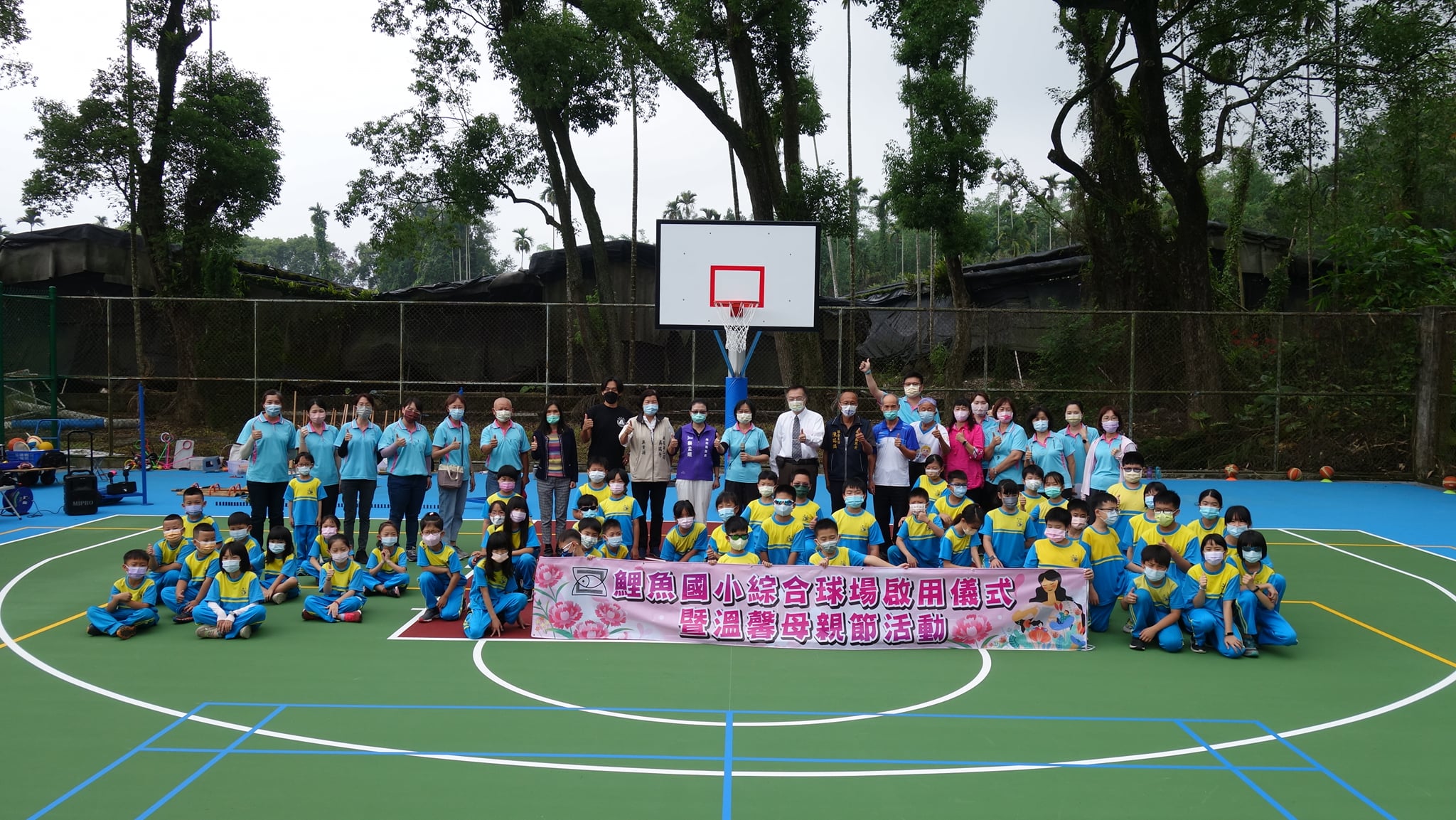 南投縣竹山鎮鯉魚國小舉行「綜合球場落成啟用暨溫馨母親節慶祝活動」,新球場的落成將為學校帶來新氣象,也祝福學童們學習蒸蒸日上,全天下的母親身體健康,母親節快樂。