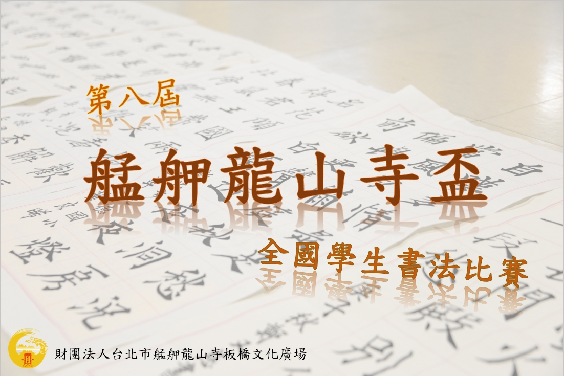 【目的】為新世代文化植根,建立人文素養,鼓勵大眾研習書法,認識傳統文化,進而融入生活,並建立艋舺龍山寺之推廣書法教育形象,特舉辦艋舺龍山寺盃全國學生書法比賽。