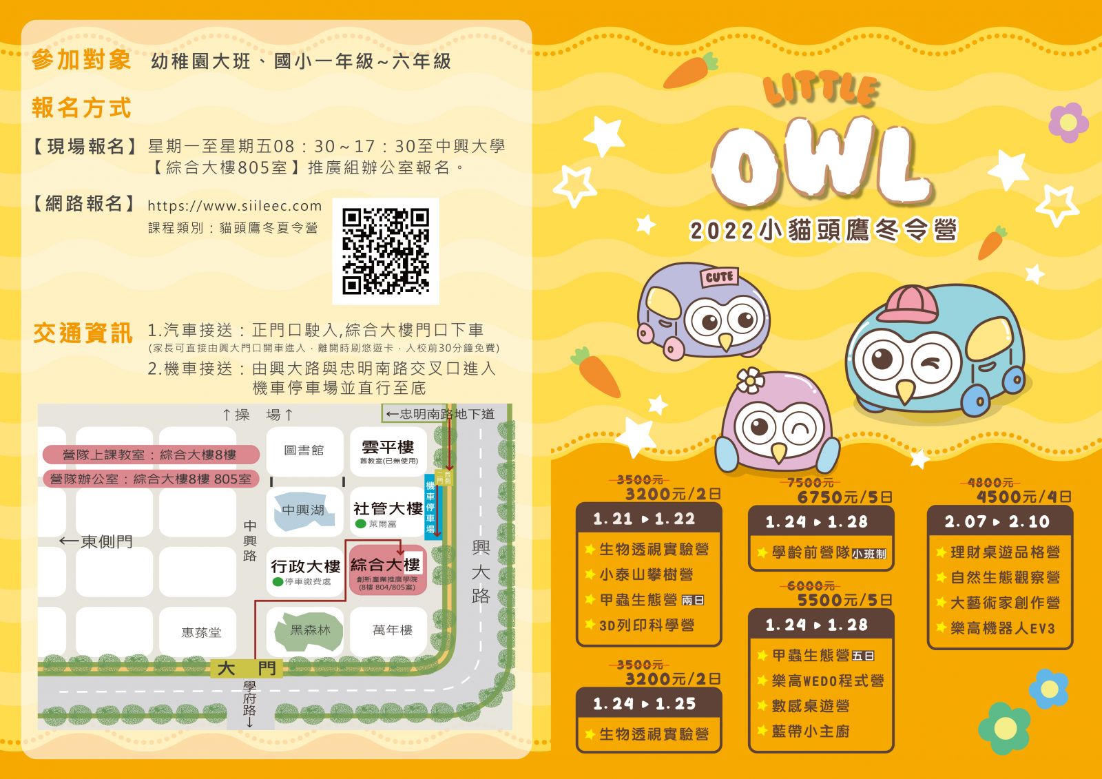 【2023小貓頭鷹夏令營】112年5月9日,星期二早上9點開放線上及現場報名