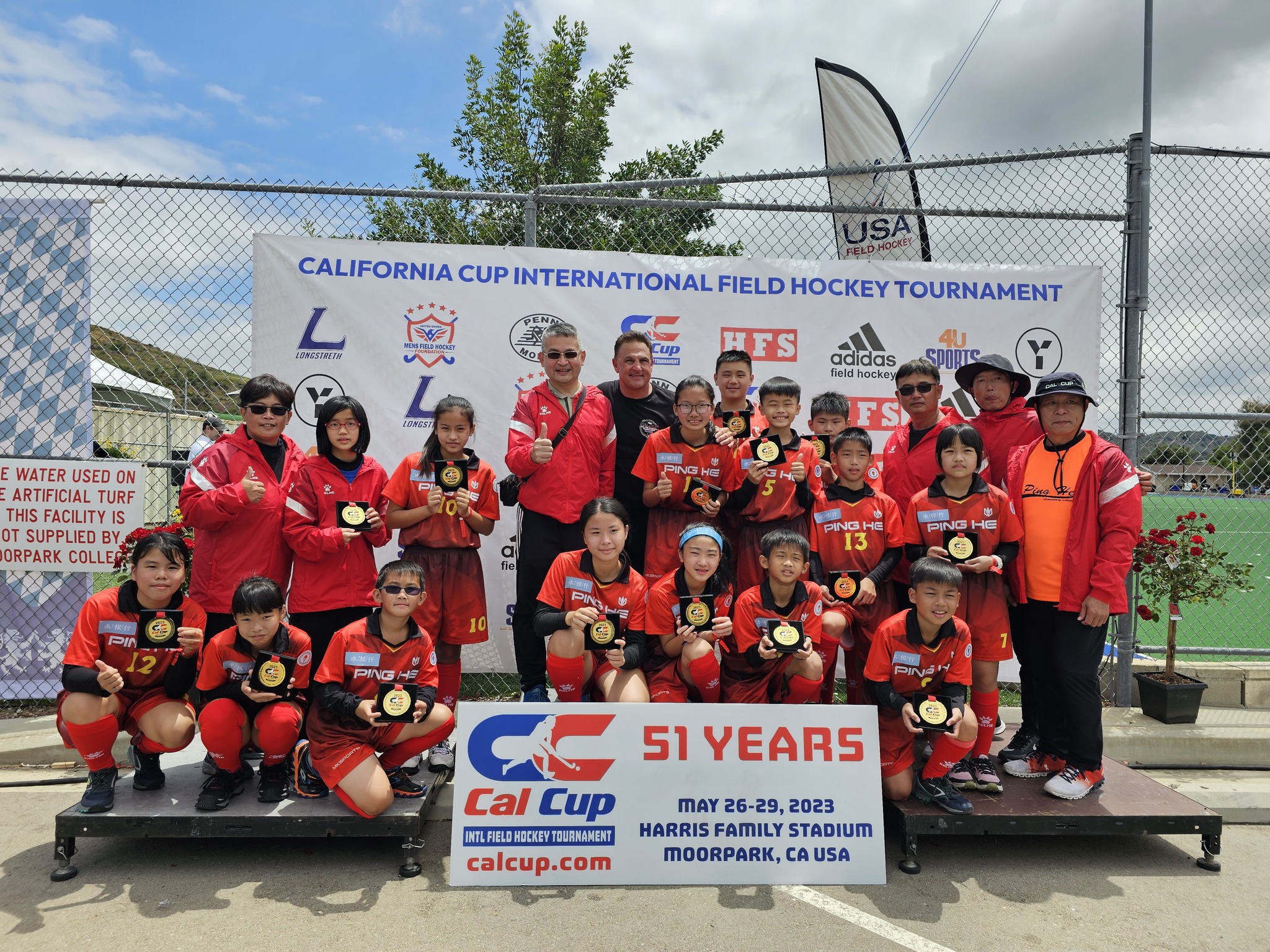 彰化市平和國小曲棍球隊於5月25日至6月2日前往美國參加「2023年美國加州盃國際曲棍球分齡錦標賽」,經過連日的激烈競賽,平和國小曲棍球隊成功奪得冠軍。這是該隊繼2017年、2018年和2019年三連霸後的第四次奪冠,再次展現了他們在曲棍球領域的卓越實力。
