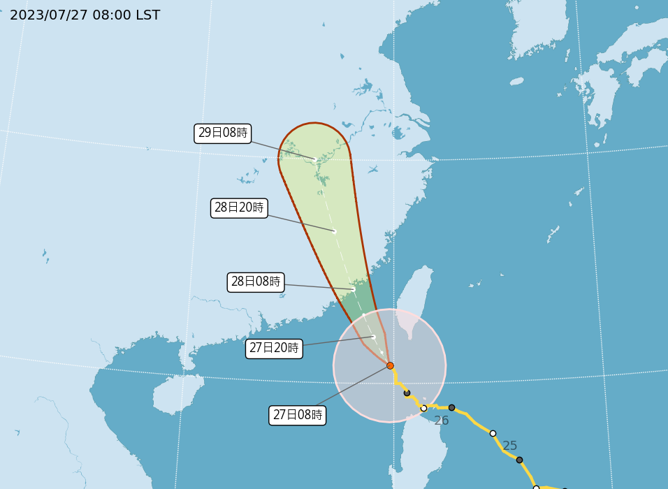 颱風杜蘇芮26日晚間速度加快以北北西方向前進,預估彰化、南投及台中陸續納入陸上颱風警報範圍。