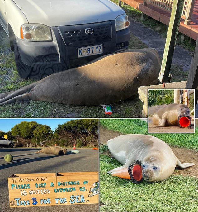 她早上被庭院中發出巨大的拍打聲吵醒,當她檢查時,驚訝地發現一隻體型龐大、重達600公斤的南象鼻海豹(southern elephant seal)正在她的庭院裡自在遊蕩。這隻海豹甚至不僅發出嚇人的巨響,還直接擋在她的汽車前面,使她無法順利上班。