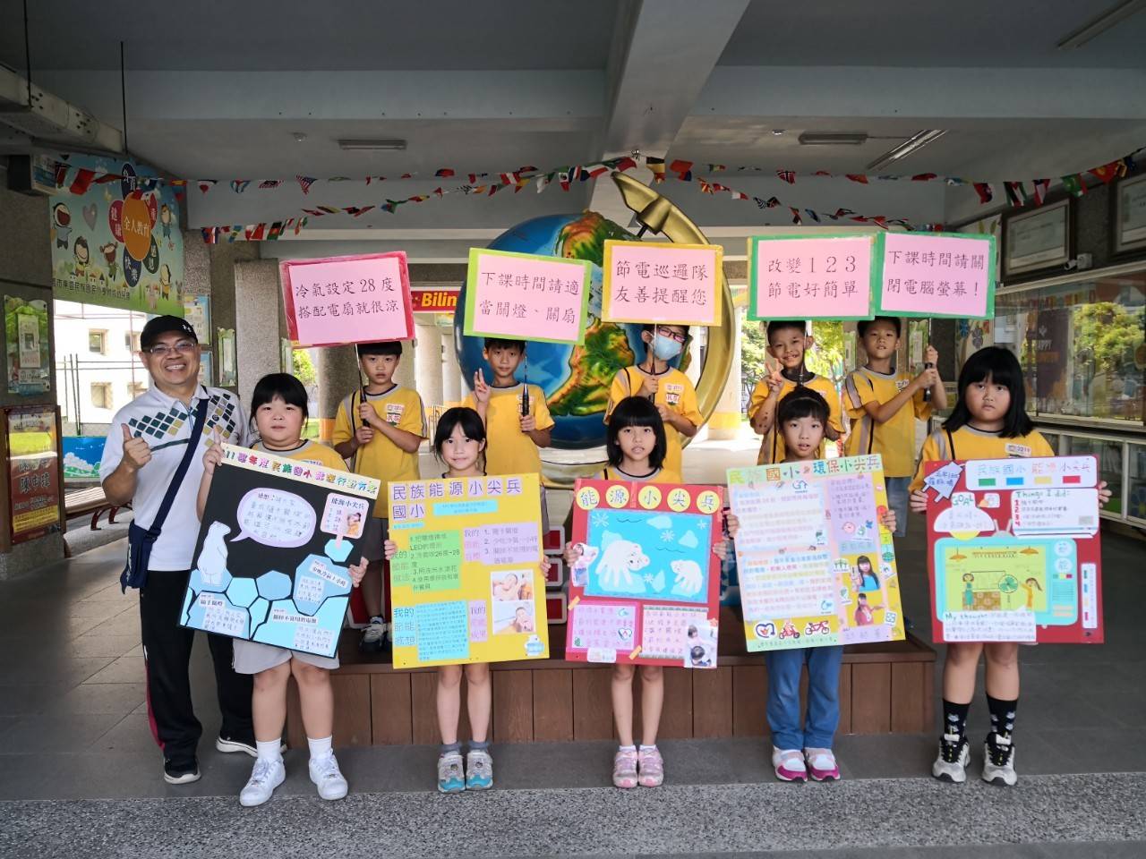 民族國小以「你我的小事,地球的大事」為題進行課程設計,例如設計「綠能城市」課題,邀請學生發想設計未來城市樣貌,並從生活情境中發現問題並提出解方,不僅全校都有志一同的減少廚餘、落實垃圾分類,先前更曾有學生與廟宇一同合作,宣導「心香」,減低焚香燒金紙造成的空汙,都展現了學生對於永續的關注與行動力。節能就在生活中,是件看似簡單卻不容易的事,但民族國小的學生們身體力行,成為推動永續的一份子。