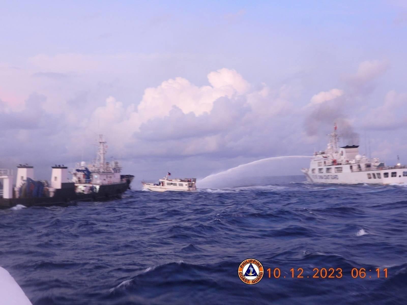 菲律賓海岸防衛隊表示,一艘菲律賓船隻在南海執行補給任務時遭到一艘中國海警船的碰撞,並聲稱對參與補給任務的3艘菲律賓船隻進行高壓水柱射擊,導致其中一艘船隻引擎嚴重受損。這是自10月以來在仁愛暗沙(Second Thomas Shoal)附近發生的第二起中菲船隻碰撞事件。