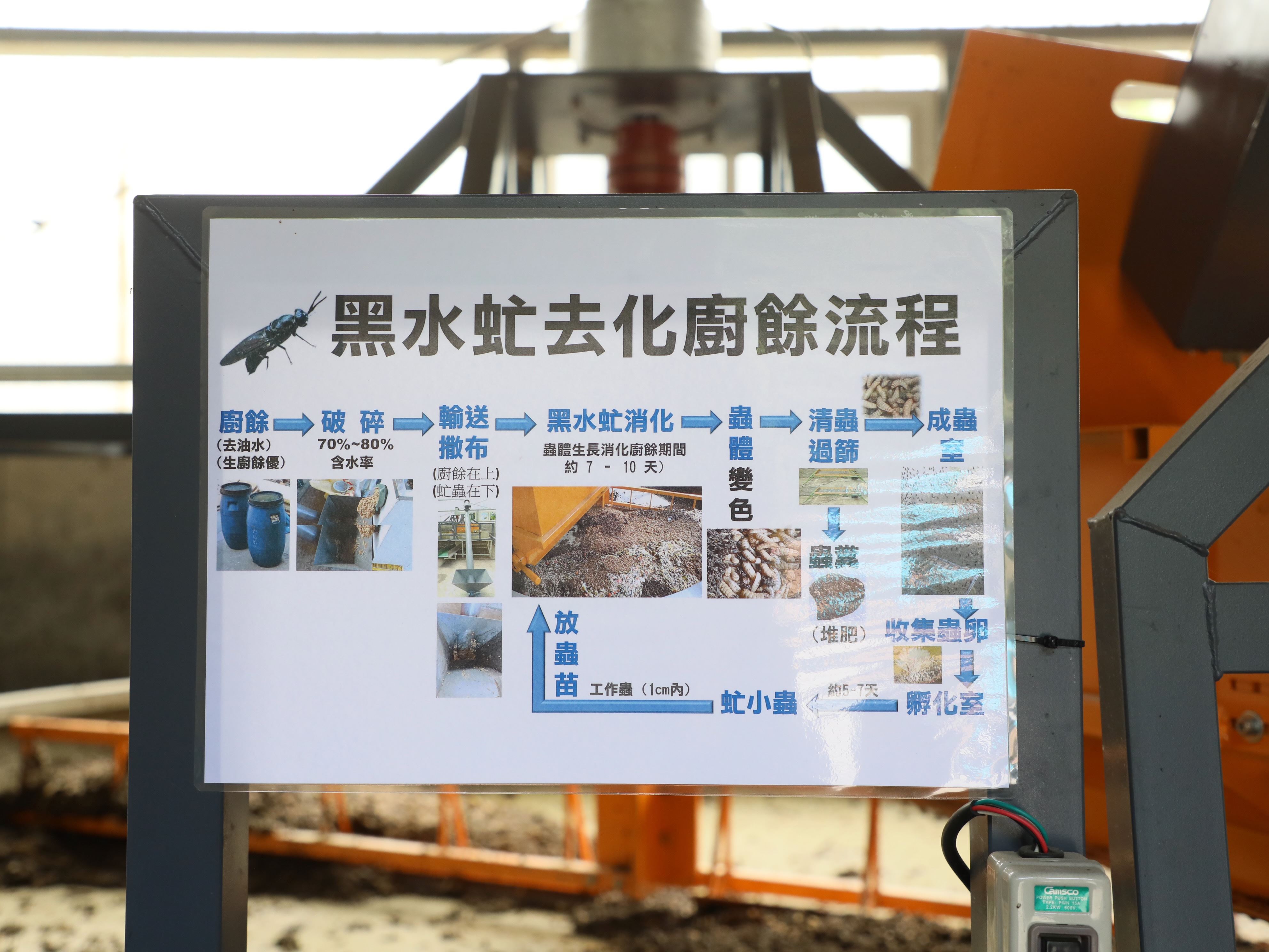 一個世代的黑水虻約存活45~60天,成長過程分卵、幼蟲、蛹及成蟲等4大階段,在幼蟲努力長大成蟲的過程中能大量地吃掉廚餘,消化後排出的虻糞富含有機質,是很好的天然有機肥料,也很適合用來增加土壤的肥沃程度,長大的蟲體還可以直接餵雞、餵魚,加工處理後能做水產養殖高蛋白粉的使用,還能提煉蟲油製成化妝品,是對人類有益的昆蟲,也不會傳播畜禽動物疾病或危害農作物與干擾人類生活,還是本土物種,若發生蟲蟲逃走外洩,對生態系的影響和疾病傳播風險低。