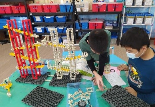 各年級的競賽主題是依照學生的程度來設計,一年級《堆疊沉積岩》,透過染色和配色製作七彩鹽,並堆疊出一層一層的沉積岩;二年級《跳跳彈力球》,藉由硼砂與PVA的交聯作用,製作出具彈跳性能的彈力球;三年級《紙船負重》,了解水的浮力現象後,看看誰可以在紙船上放最多的墊片;四年級《物擊必反-創意動力車》,蒐集回收材料製作動力車,透過氣球的反作用力與不斷實驗與修正,讓動力車在距離賽、推骨牌、障礙賽中獲得佳績;五年級《創義機關王》,結合學校科學積木STEAM特色課程,讓學生融會貫通並活用科學原理,經過巧妙的設計與構思,串成一個接一個觸發的多元關卡機關;六年級《紙橋大力士》,利用回收紙與膠帶,製作載荷量大的紙橋。