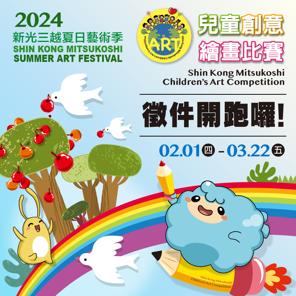 - 郵寄繳件:台北市110松高路19號7樓,「新光三越兒童創意繪畫比賽─活動小組 收」(收件時間以郵戳為憑)。