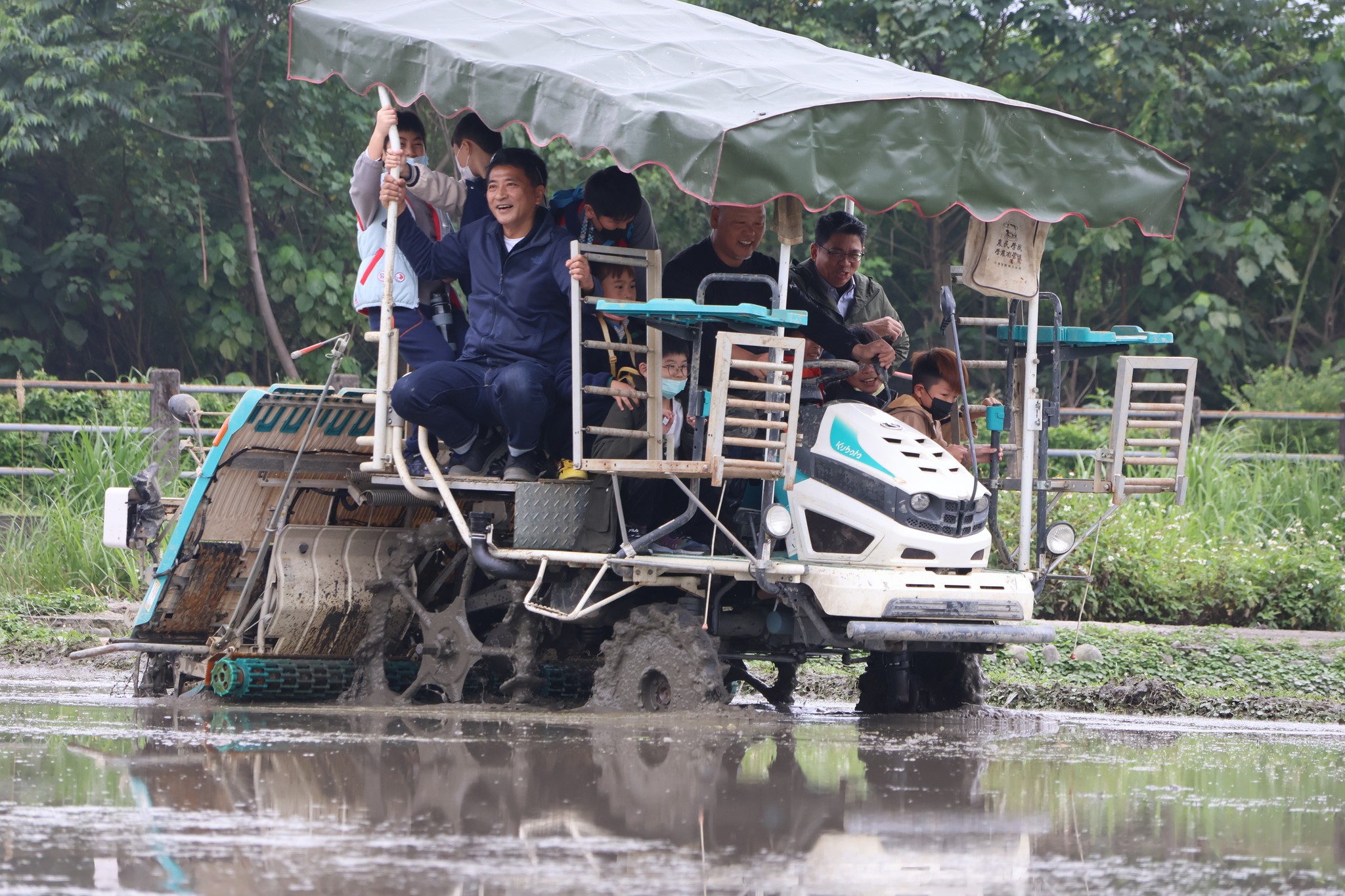 在參觀期間,馬賽國小的師生還前往了實行「稻鴨共生」友善農法的農田實地了解與學習。這種農法在稻田休耕期間,放養鴨子在田裡自由活動,鴨子不僅可以翻攪土壤,抑制雜草生長,還能產生有機的肥料,有助於提高土地的肥力。而在稻苗插秧後,這些小鴨還能幫忙清除福壽螺和害蟲,保護稻苗免受損害。