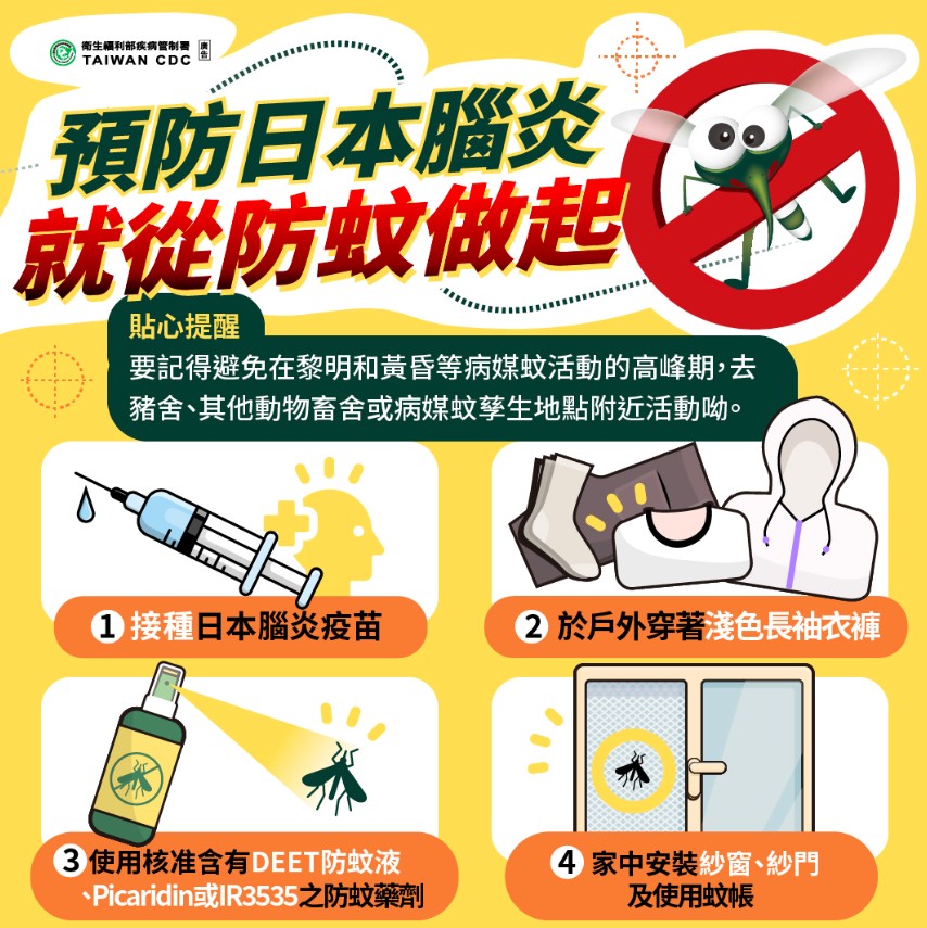 這個病為什麼叫日本腦炎呢?原來,這個病最早在1871年在日本有記載,1935年日本的科學家第一次成功分離並確認了這個病毒,所以取名為日本腦炎。預防這個病最有效的方法是接種疫苗,衛生局建議小朋友在15個月大時接種第一劑疫苗,然後隔一年再接種第二劑。因為現在小朋友都有打疫苗,所以大部分生病的是40歲以上的成人。除了接種疫苗之外,我們也可以做好防蚊措施,來降低被蚊子叮咬的風險。同學們,如果你們還沒有接種疫苗,記得提醒爸爸媽媽帶你們去打疫苗喔,這樣我們才能更好地預防日本腦炎!