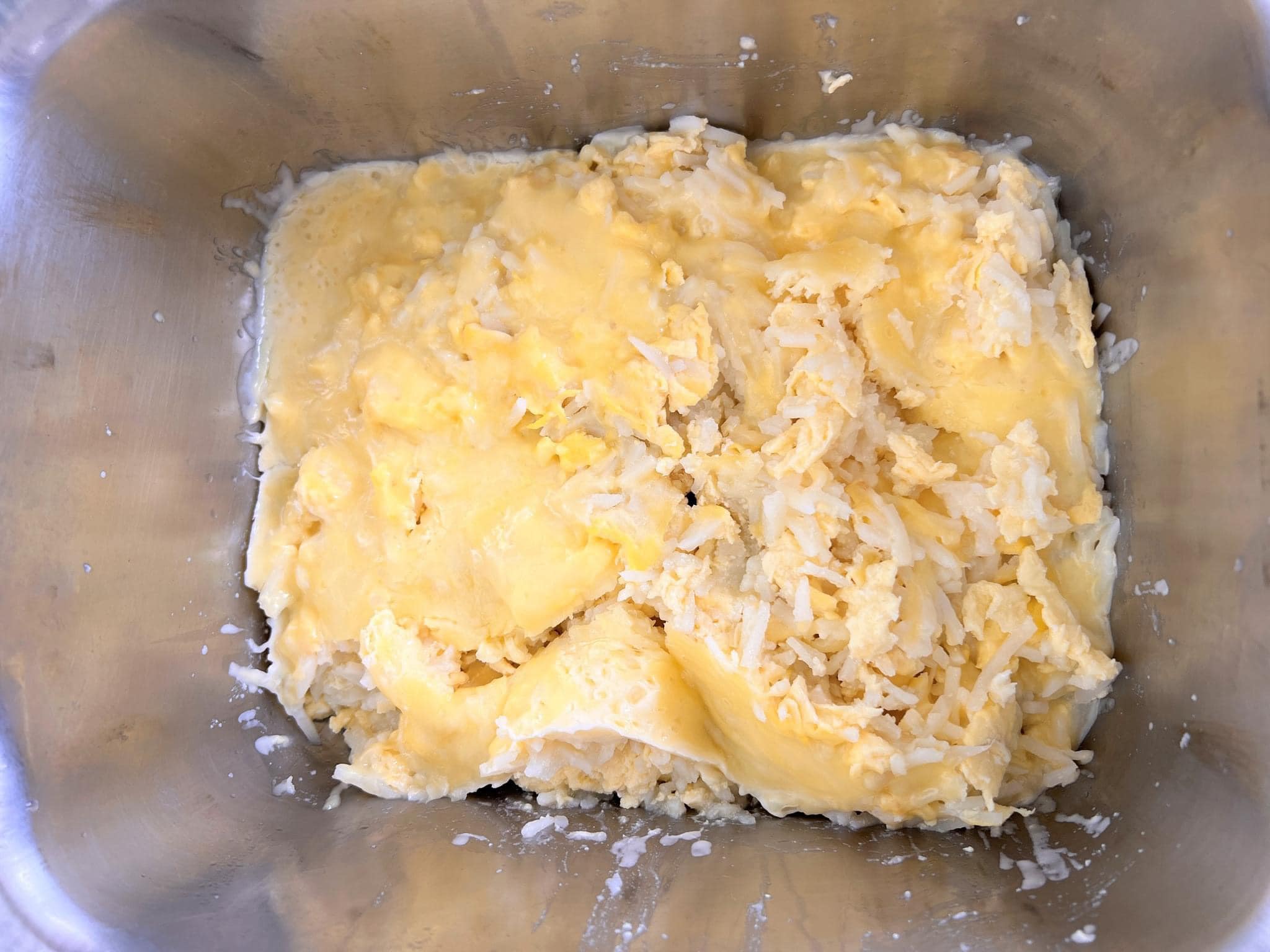 3.馬鈴薯炒軟後盛起,將已調好味的牛奶蛋液加入。