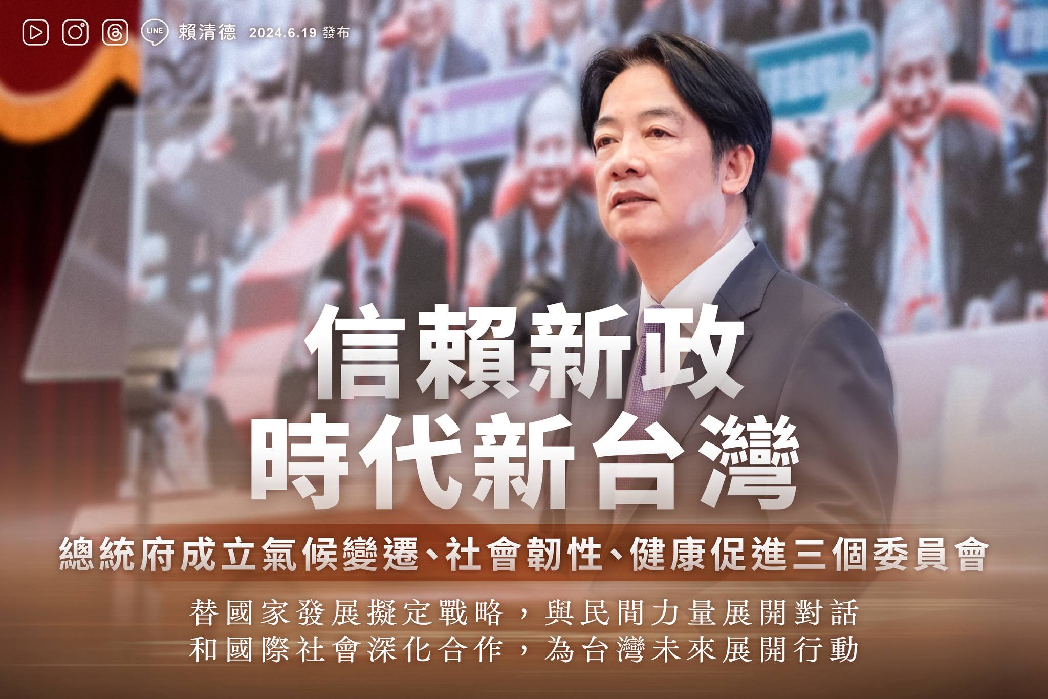 總統賴清德上任滿一個月,他決定在總統府成立三個新的委員會,來處理一些對我們國家很重要的事情。這三個委員會分別是:國家氣候變遷對策委員會、全社會防衛韌性委員會、健康台灣推動委員會。這些委員會會每三個月開一次會議,討論怎麼讓我們的國家變得更好。