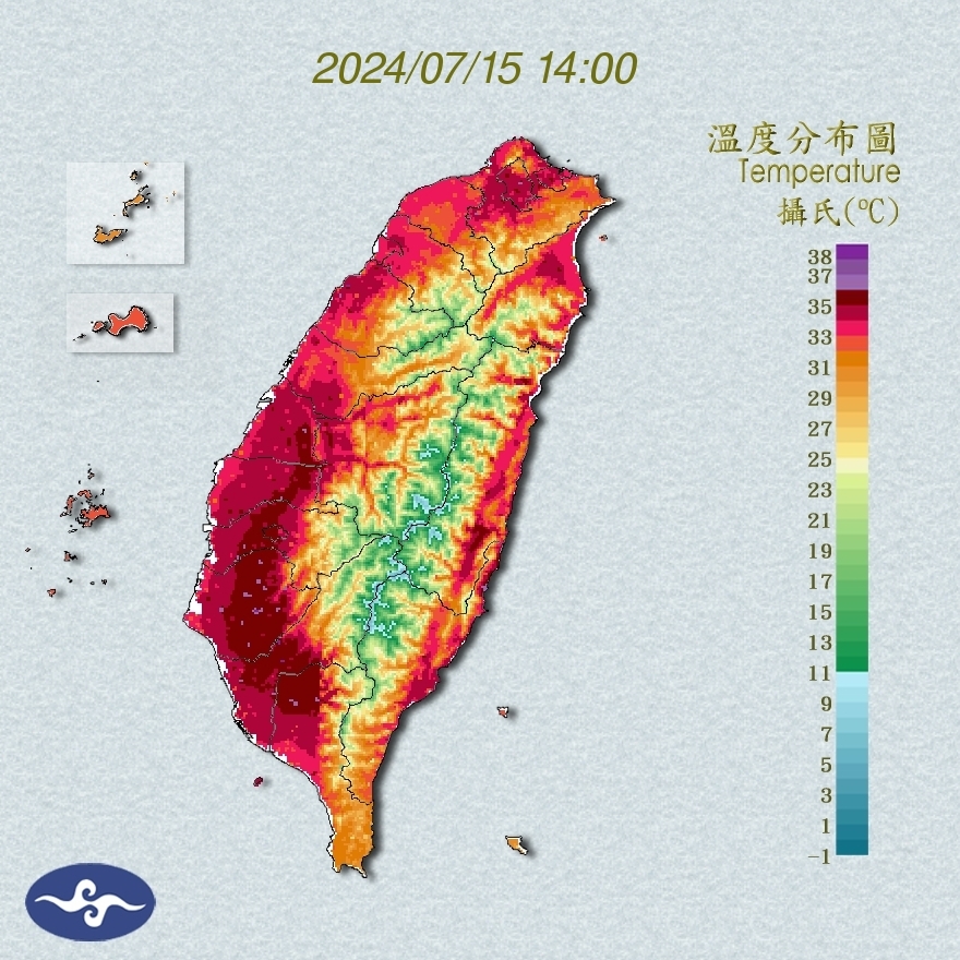 很多地方的氣溫都非常高,不僅是新北市,像苗栗、台北、桃園、雲林、嘉義、台南、高雄、屏東、宜蘭和台東等地,氣溫也都超過了37度。