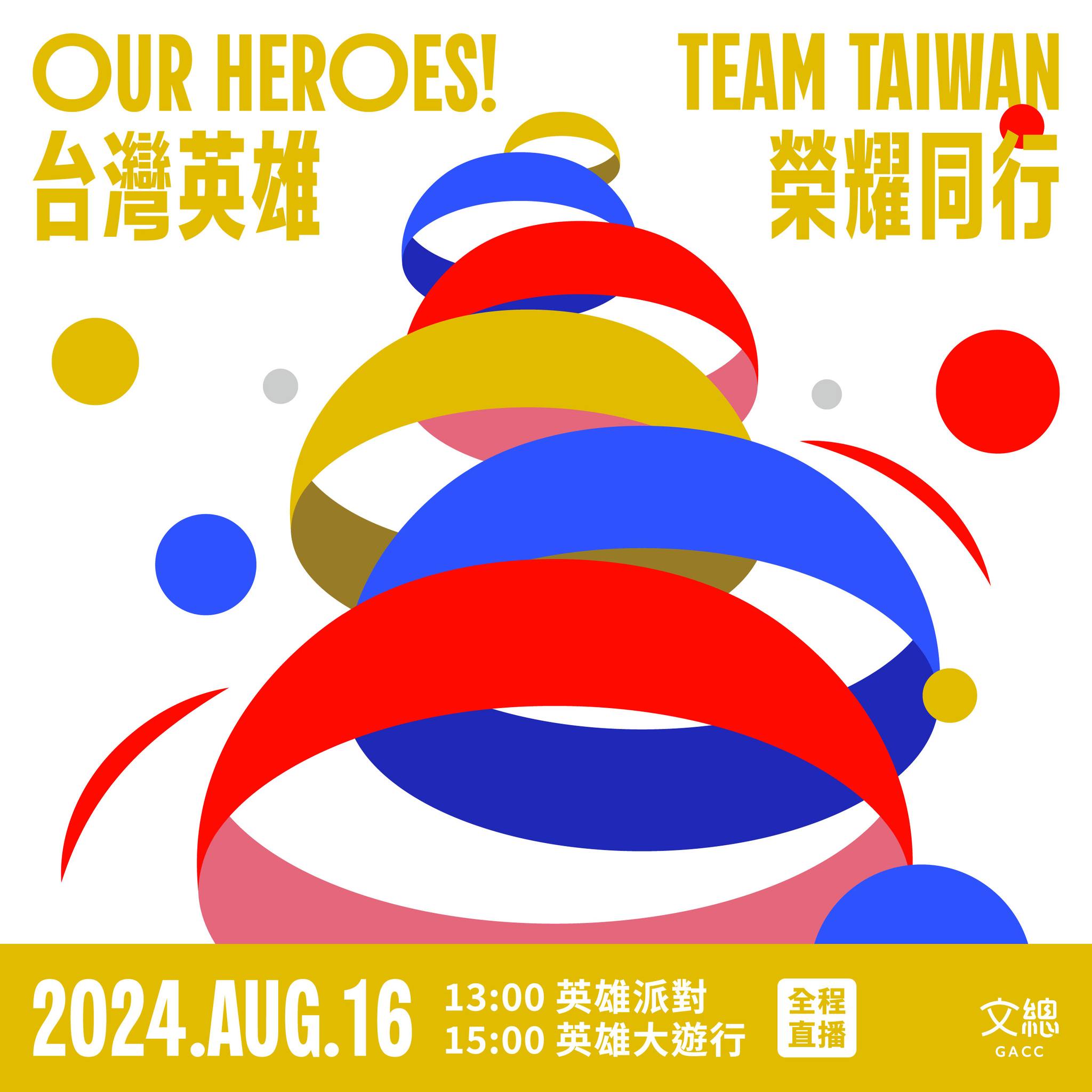 巴黎奧運代表團將在8月16日下午1時至3時,結束總統府內活動後,登上「台灣英雄大遊行」車隊,預計下午3時由總統府出發,途經重慶南路一段、襄陽路、館前路(英雄谷)、至忠孝西路及中山南路口結束。