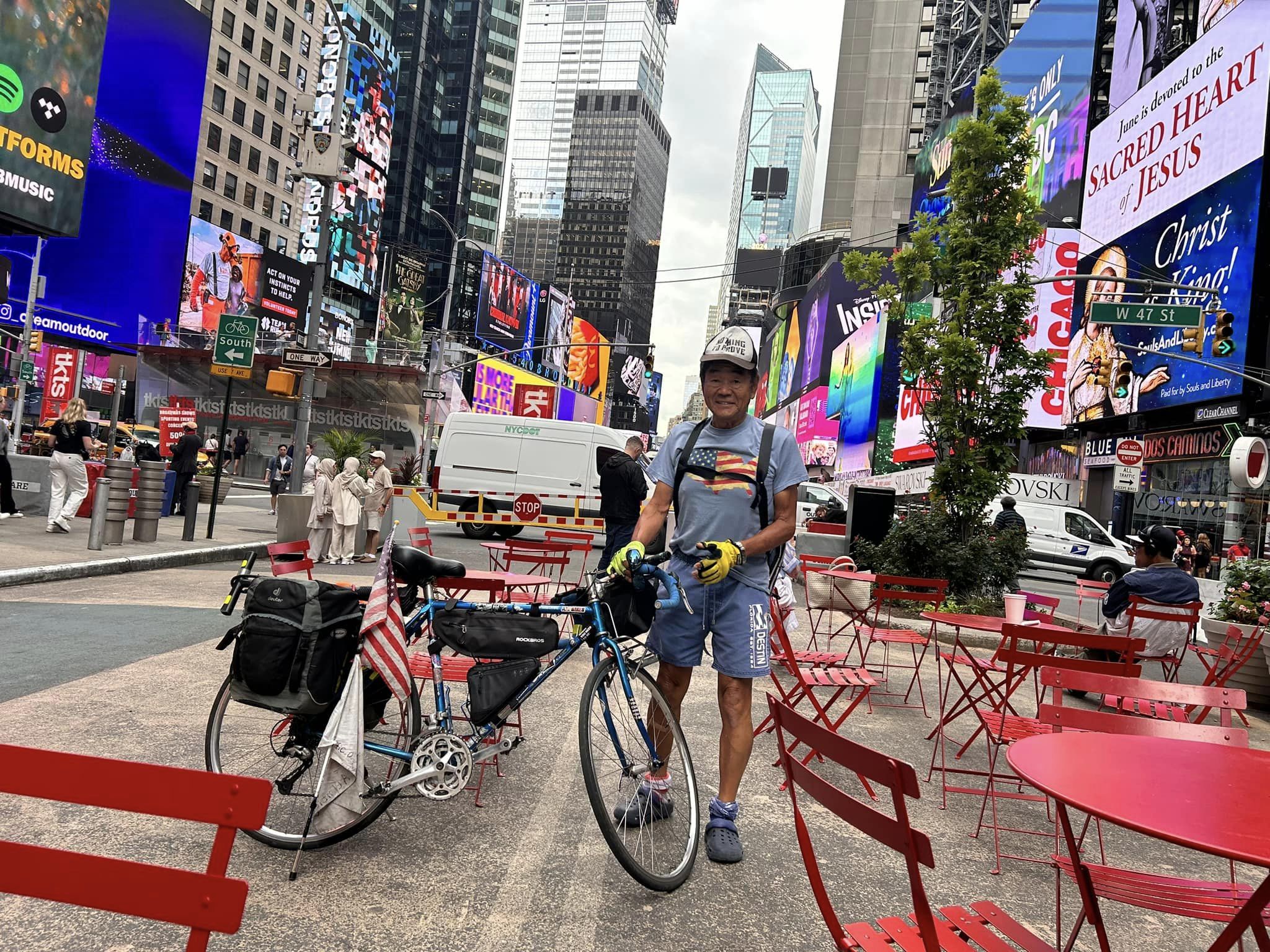 一位80歲的日本爺爺市川榮一在今年3月至6月期間,成功地從美國的西岸騎自行車到東岸,完成了約6000公里的旅程。市川爺爺以前曾經騎自行車跨越過美國的北部,他一直夢想著能夠騎車環繞整個美國。而這次的冒險,他帶著20公斤的行李,包括帳篷、睡袋和換洗衣物,從加州出發,向著遙遠的紐約前進。