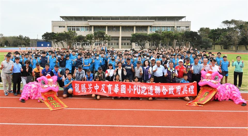 彰化縣育華國小的操場跑道因為長時間受到風吹日曬雨淋,表層開始出現了裂縫和磨損,這樣的情況對於跑步和玩耍的學生來說其實很不安全。為了讓學校的同學們,以及來運動的社區居民,都能在安全的環境中活動,學校決定進行全面的翻修,把舊的跑道換成新的,並在完工後舉行了一個啟用典禮。這樣,孩子們就可以安心地跑步,社區的民眾也有更好的運動空間。