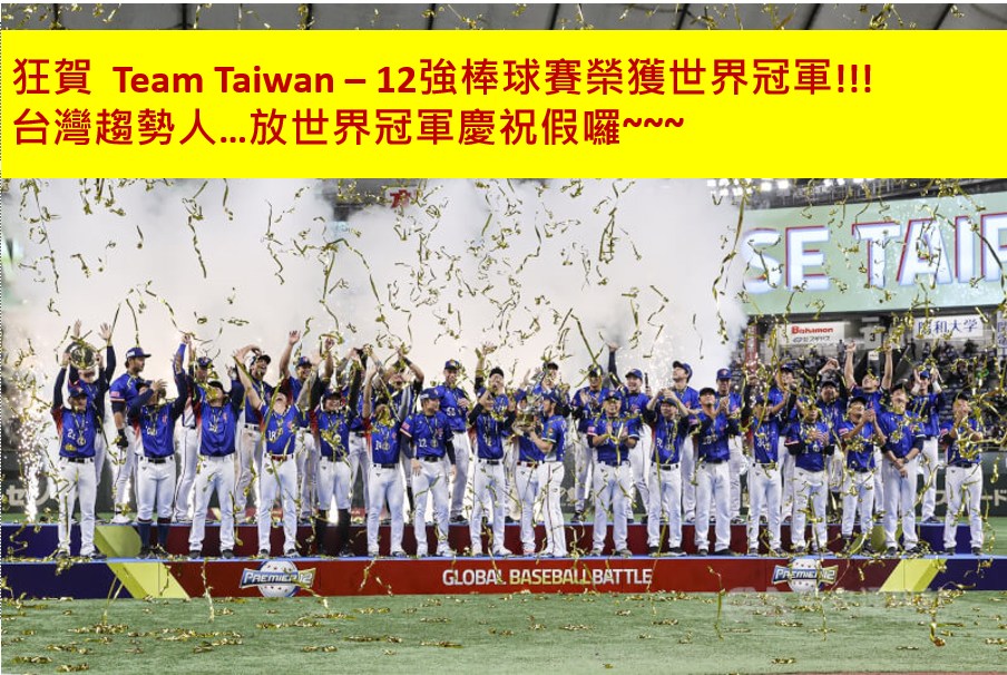 在最近的世界12強棒球賽中,台灣的棒球隊以4比0戰勝了日本隊,成功奪得了冠軍!這是一次歷史性的勝利,讓全台灣的人都非常開心和驕傲。為了慶祝這個特別的時刻,資安大廠趨勢科技決定讓所有在台灣的員工都放一天假,這一天被稱為「世界冠軍慶祝假」。