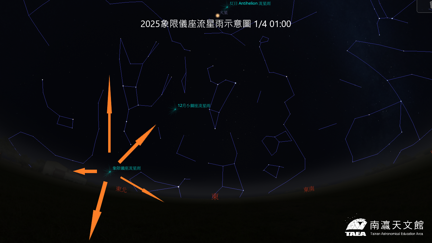 象限儀座流星雨(Quadrantids)是每年1月初出現的一場美麗天文現象,它的名字聽起來很特別,但實際上是來自一個已被廢除的星座「象限儀座」。這場流星雨的特色是能看到明亮的火流星,也就是劃過天際的特別亮流星,非常壯觀。每年1月4日左右是最佳觀賞時間,而從12月底到1月中旬也能看到零星的流星。