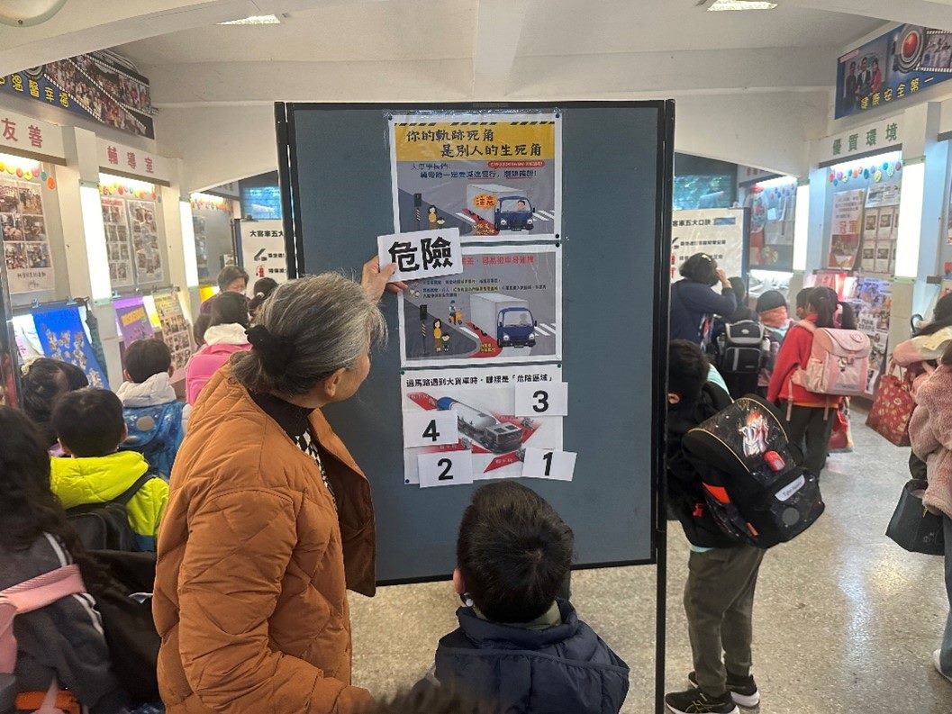 學校還設計了有趣的交通安全闖關活動,讓學生邊玩邊學。活動包括三個關卡,第一關教大家認識交通號誌,學會紅燈停、黃燈不搶快、綠燈快通過;第二關讓學生了解大車的危險區域以及內輪差;第三關則是認識大客車的五大安全守則,例如安全帶、逃生出口的位置等。如果闖關成功,學生就能更懂得如何保護自己在路上的安全。