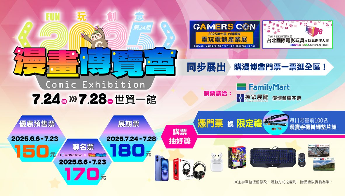 最近在台北有一個超級好玩的活動正在舉行,從7月24日開始到7月28日,在台北的世貿一館,有三個很酷的大展覽一起登場:第24屆「漫畫博覽會」與「台灣國際電玩電競產業展」、「台北國際電影玩具暨玩具創作大展」,一張漫博門票就能逛全區!