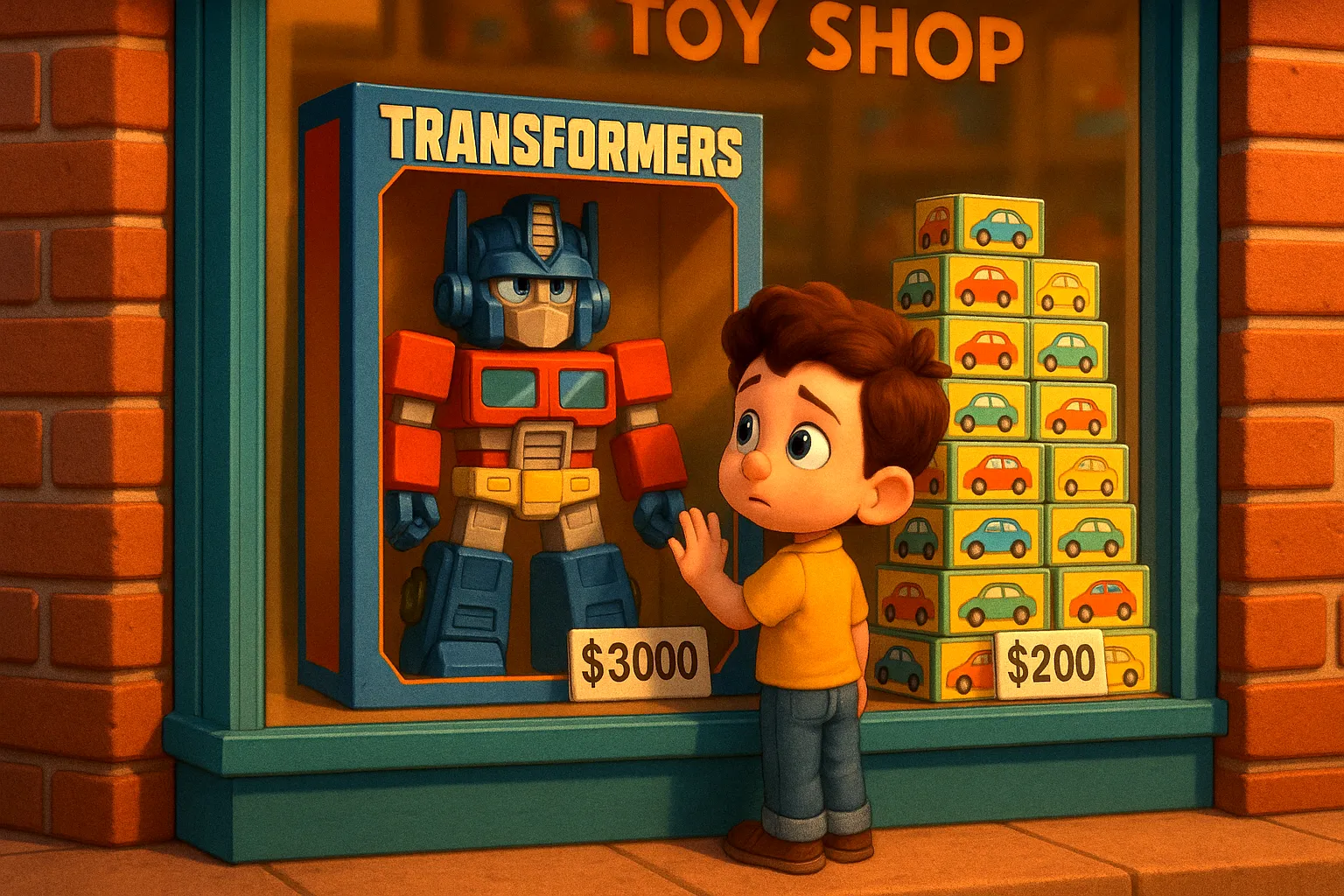 想像一下,你和朋友在玩具店裡看到兩個玩具:一個是很貴的限量版的變形金剛,只有100個;另一個是普通的小汽車,有很多很多個。兩者的價錢差很多,那,為什麼變形金剛比較貴呢?