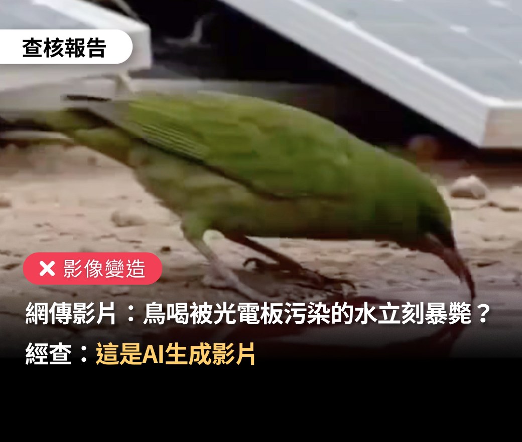 你有沒有聽過、看過網路上有時會出現的一些「假消息」?最近有一個影片在網路上傳得很快,說有小鳥喝到太陽能板附近的「紅水」後馬上死掉。聽起來很可怕對不對?但是,環境部找專家來檢查後,證實那是「假影片」,而且是用電腦AI做出來的。