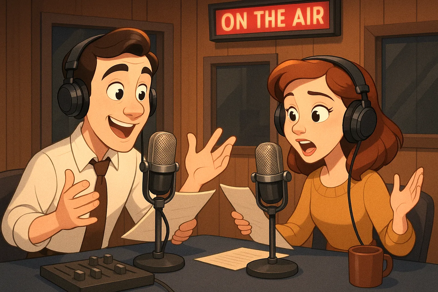 你有沒有聽過Podcast、廣播節目或是有音效的故事書?廣播劇就有點像那樣——不用畫面、沒有動畫,只有聲音、音樂和音效。可是!只要閉上眼睛聽,你的腦袋就能「自己畫出故事畫面」!這就像是「用耳朵看電影」一樣神奇。🎧✨