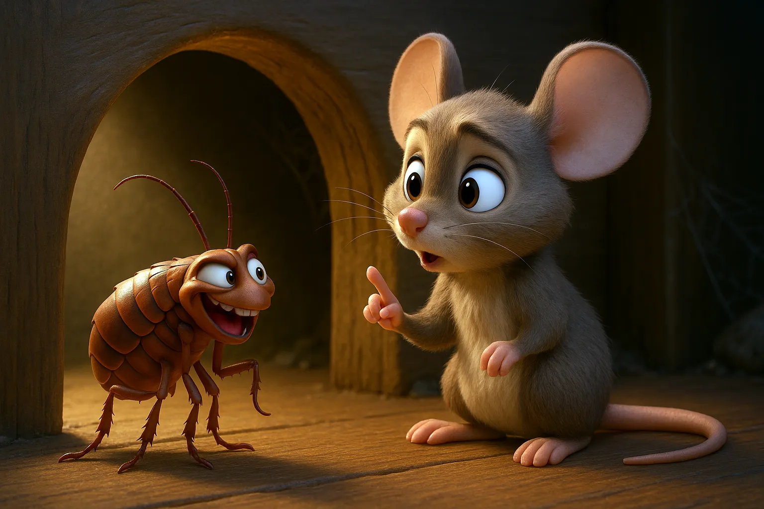 老鼠看到跳蚤在洞裡跳來跳去,忍不住提醒牠:「嘿,小傢伙,我知道你很靈活,但你老是到處叮人,早晚會惹麻煩。人類可不像我,他們真的會抓你、拍你,你跑再快也躲不過。」