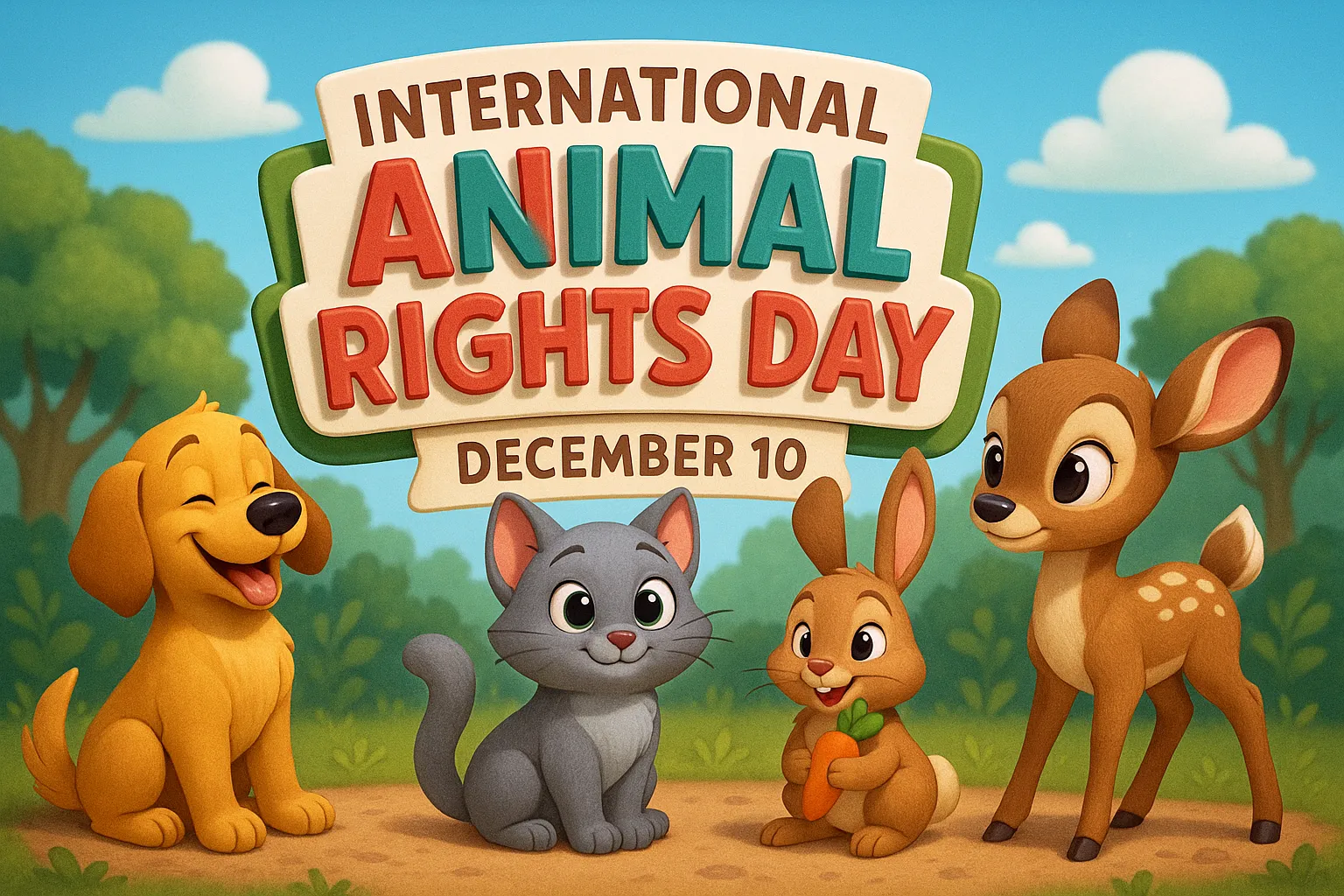 每年12月10日 有一個很重要的日子,叫做 「國際動物權益日(International Animal Rights Day)」。這一天是要提醒大家:動物也跟人一樣,應該被好好對待,不可以被傷害、欺負或忽視。