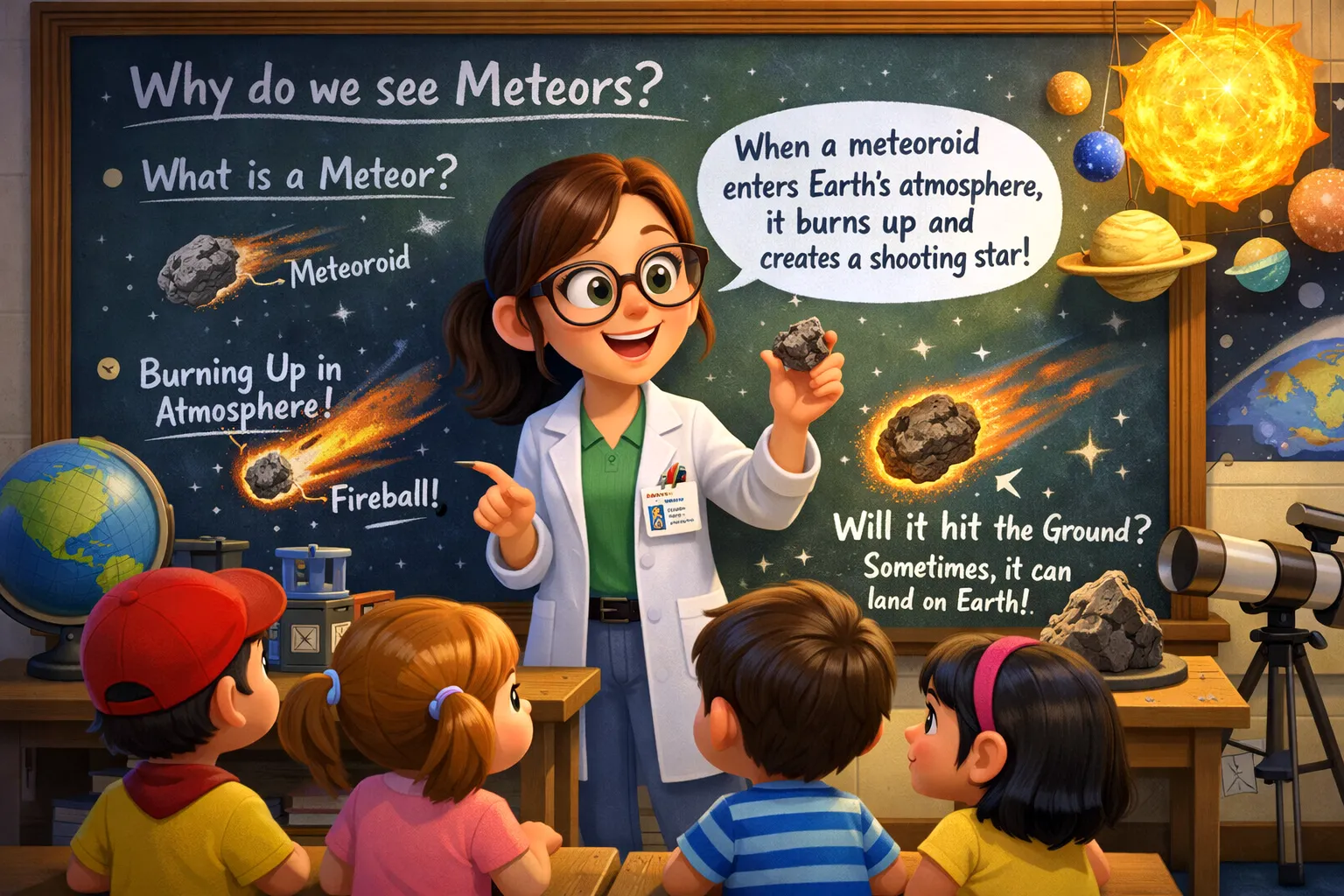 太陽系裡到處都有碎石、沙粒大小的太空物質(叫做「流星體」)。當地球在繞太陽公轉時,偶爾會「撞上」這些碎石——於是好戲就開始了。