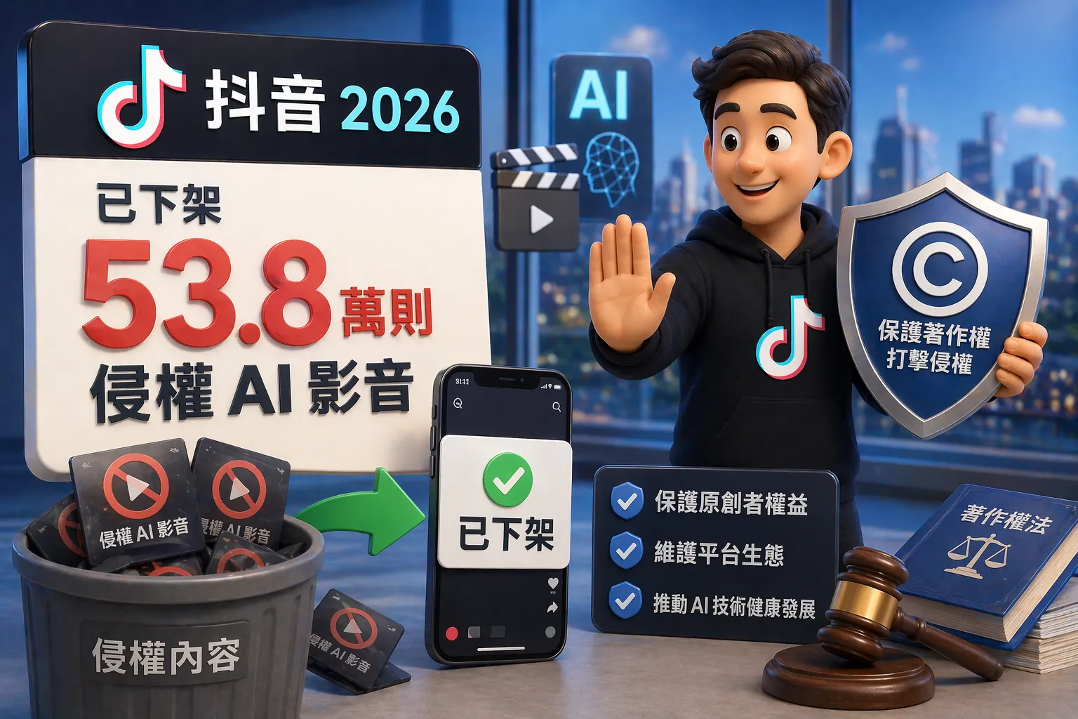 中國短影音社群平台抖音表示,今年以來累計下架「AI侵權」短影音53.8萬則。抖音也坦言,平台持續關注侵權作品問題,但在治理能力上仍遇到困難,例如AI生成內容有時很難判斷是否侵權、平台的識別能力不足等。